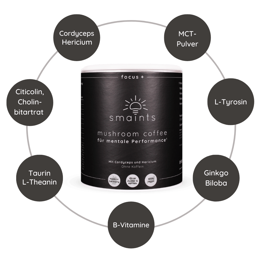 Wir haben es uns bei smaints zur Aufgabe gemacht, die explodierende Anzahl an neuen Studien zu Vitalpilzen mit den unglaublichen Erfahrungen aus über 5000 Jahren Traditioneller Chinesischer Medizin (und TEN uvm.) in unsere Produkte einfließen zu lassen. So findet sich im Mushroom Coffee die beste Kombination aus Vitalpilzen für mehr Energie und Konzentration: Cordyceps und Hericium (Lions Mane).