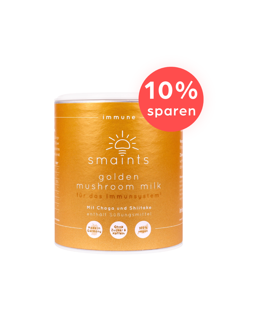 Kokosmilchpulver, Xylit, Kurkumapulver, Ceylon Zimt, Ingwerpulver, MCT-Pulver, Kurkuma-Extrakt (475 mg), Acerola-Extrakt (100 mg), natürliches Vanillearoma, Chaga-Extrakt (250 mg), Shiitake-Extrakt (250 mg), Schwarzer-Pfeffer-Extrakt (Piperin; 9,5 mg)