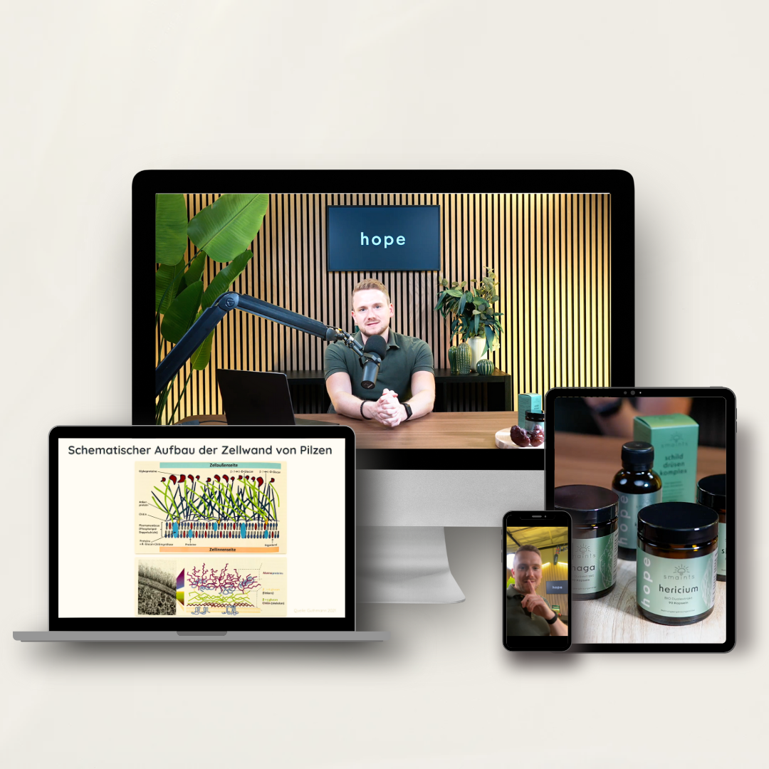 In diesem 4-teiligen Videokurs steckt unser Wissen aus über 5 Jahren zu Hashimoto, weiteren chronischen Erkrankungen und über die Power der Vitalpilze.